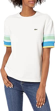 Lacoste Women S Short Sleeve Waffle Knit Striped Cuff Loose Fit T Shirt At Amazon Women S Clothing Store